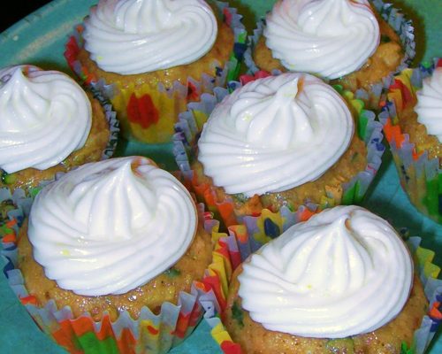 Gluten-Free Coconut, Zucchini Mini Muffins with Lemon Cream Cheese Frosting