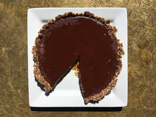 Robust Raw Cacao Pie with Nut and Fruit Crust