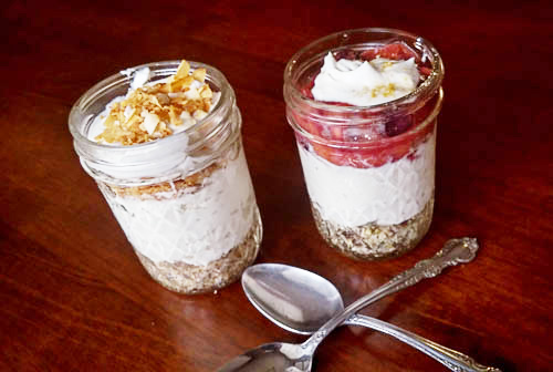 Coconut Bananza Pies Topped with Strawberry Pizzazz