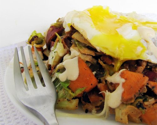 Coco-NUT-ty, Sweet Potato, and Brussels Hash