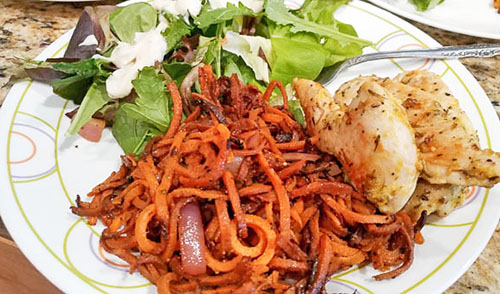 June 20, 2017 Simple Summer Skillet June 10, 2017 Indian Veg Pulao April 20, 2017 Medjool Dates with Peanuts and Cabbage Salad with Citrus Dressing March 23, 2017 Spiced Sweet Potato Spirals March 1, 2017 Butternut Squash Hash Browns November 16, 2016 Coconut Cashew Rice November 2, 2016 Cream of Zucchini Soup with Cumin September 19, 2016 Indian Coconut Rice Pulao September 6, 2016 Stir-Fry Bok Choy and Kale August 5, 2016 Italian Garlic Green Beans with Coconut Oil